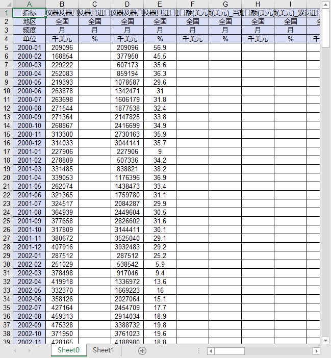 指标 计量检测分析自控仪器及器具进口额(美元)_当期 计量检测分析自控仪器及器具进口额(美元)_当期同比增速 计量检测分析自控仪器及器具进口额(美元)_累计 计量检测分析自控仪器及器具进口额(美元)_累计同比增速 手表进口额(美元)_当期 手表进口额(美元)_当期同比增速 手表进口额(美元)_累计 手表进口额(美元)_累计同比增速 机械手表进口额(美元)_当期 机械手表进口额(美元)_当期同比增速 机械手表进口额(美元)_累计 机械手表进口额(美元)_累计同比增速 电动手表进口额(美元)_当期 电动手表进口额(美元)_当期同比增速 电动手表进口额(美元)_累计 电动手表进口额(美元)_累计同比增速 手表进口量_当期 手表进口量_当期同比增速 手表进口量_累计 手表进口量_累计同比增速 机械手表进口量_当期 机械手表进口量_当期同比增速 机械手表进口量_累计 机械手表进口量_累计同比增速 电动手表进口量_当期 电动手表进口量_当期同比增速 电动手表进口量_累计 电动手表进口量_累计同比增速