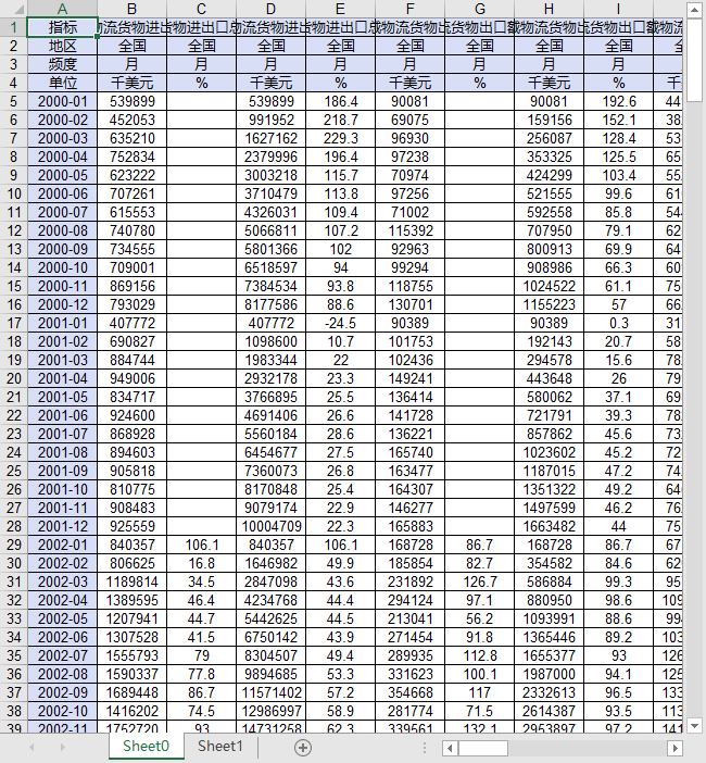 指标 海关特殊监管区域物流货物进出口总额(美元)_当期 海关特殊监管区域物流货物进出口总额(美元)_当期同比增速 海关特殊监管区域物流货物进出口总额(美元)_累计 海关特殊监管区域物流货物进出口总额(美元)_累计同比增速 海关特殊监管区域物流货物出口额(美元)_当期 海关特殊监管区域物流货物出口额(美元)_当期同比增速 海关特殊监管区域物流货物出口额(美元)_累计 海关特殊监管区域物流货物出口额(美元)_累计同比增速 海关特殊监管区域物流货物进口额(美元)_当期 海关特殊监管区域物流货物进口额(美元)_当期同比增速 海关特殊监管区域物流货物进口额(美元)_累计 海关特殊监管区域物流货物进口额(美元)_累计同比增速 海关特殊监管区域物流货物出口额(美元)_国有企业_累计 海关特殊监管区域物流货物出口额(美元)_国有企业_累计同比增速 海关特殊监管区域物流货物进口额(美元)_国有企业_累计 海关特殊监管区域物流货物进口额(美元)_国有企业_累计同比增速 海关特殊监管区域物流货物出口额(美元)_私营企业_累计 海关特殊监管区域物流货物出口额(美元)_私营企业_累计同比增速 海关特殊监管区域物流货物进口额(美元)_私营企业_累计 海关特殊监管区域物流货物进口额(美元)_私营企业_累计同比增速 海关特殊监管区域物流货物出口额(美元)_外商投资企业_累计 海关特殊监管区域物流货物出口额(美元)_外商投资企业_累计同比增速 海关特殊监管区域物流货物进口额(美元)_外商投资企业_累计 海关特殊监管区域物流货物进口额(美元)_外商投资企业_累计同比增速 海关特殊监管区域物流货物出口额(美元)_中外合资经营企业_累计 海关特殊监管区域物流货物出口额(美元)_中外合资经营企业_累计同比增速 海关特殊监管区域物流货物进口额(美元)_中外合资经营企业_累计 海关特殊监管区域物流货物进口额(美元)_中外合资经营企业_累计同比增速 海关特殊监管区域物流货物出口额(美元)_中外合作经营企业_累计 海关特殊监管区域物流货物出口额(美元)_中外合作经营企业_累计同比增速 海关特殊监管区域物流货物进口额(美元)_中外合作经营企业_累计 海关特殊监管区域物流货物进口额(美元)_中外合作经营企业_累计同比增速 海关特殊监管区域物流货物出口额(美元)_外资(独资)企业_累计 海关特殊监管区域物流货物出口额(美元)_外资(独资)企业_累计同比增速 海关特殊监管区域物流货物进口额(美元)_外资(独资)企业_累计 海关特殊监管区域物流货物进口额(美元)_外资(独资)企业_累计同比增速