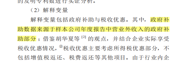 参考顶刊《中国工业经济》郭玥(2018)的做法,上市公司获得政府补助的信息披露于公司年报财务报表附注“营业外收入”科目下的“政府补助明细”中,整理和筛选得到政府补助明细数据