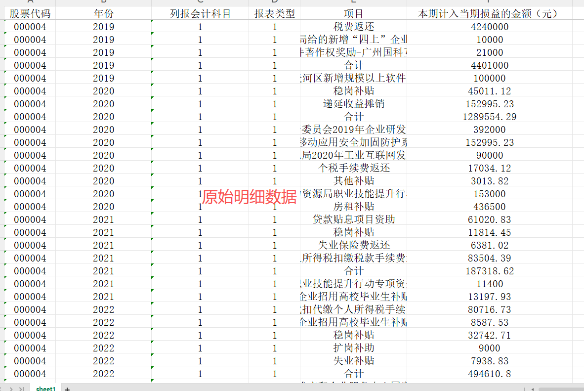 上市公司ZF补助金额统计数据/提供原始明细数据,2007-2024年,整理好的面板数据
