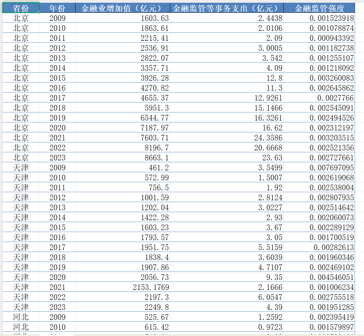本次分享的是31个省份金融监管强度数据测算,数据范围为2009-2023年,希望对大家有用