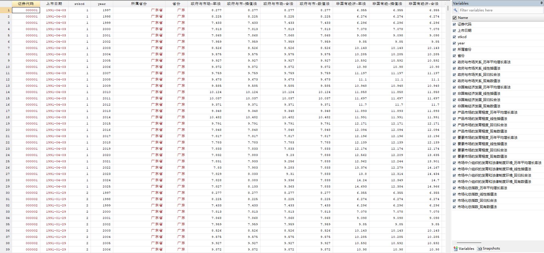 樊纲市场化细分指数跨年可比指数匹配公司数据