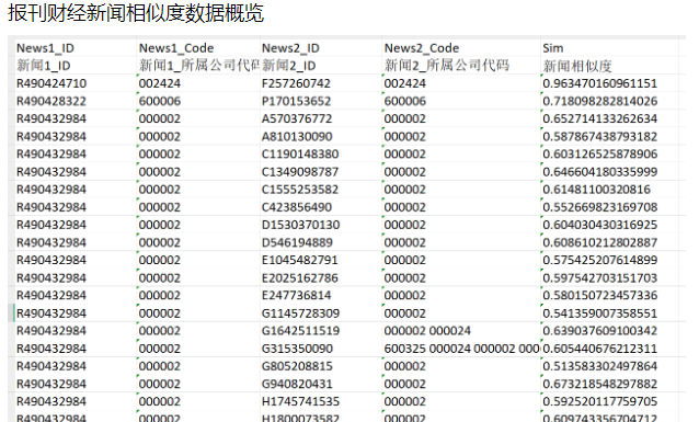 (7)报刊财经新闻相似度:按新闻事件区分,无时间区间