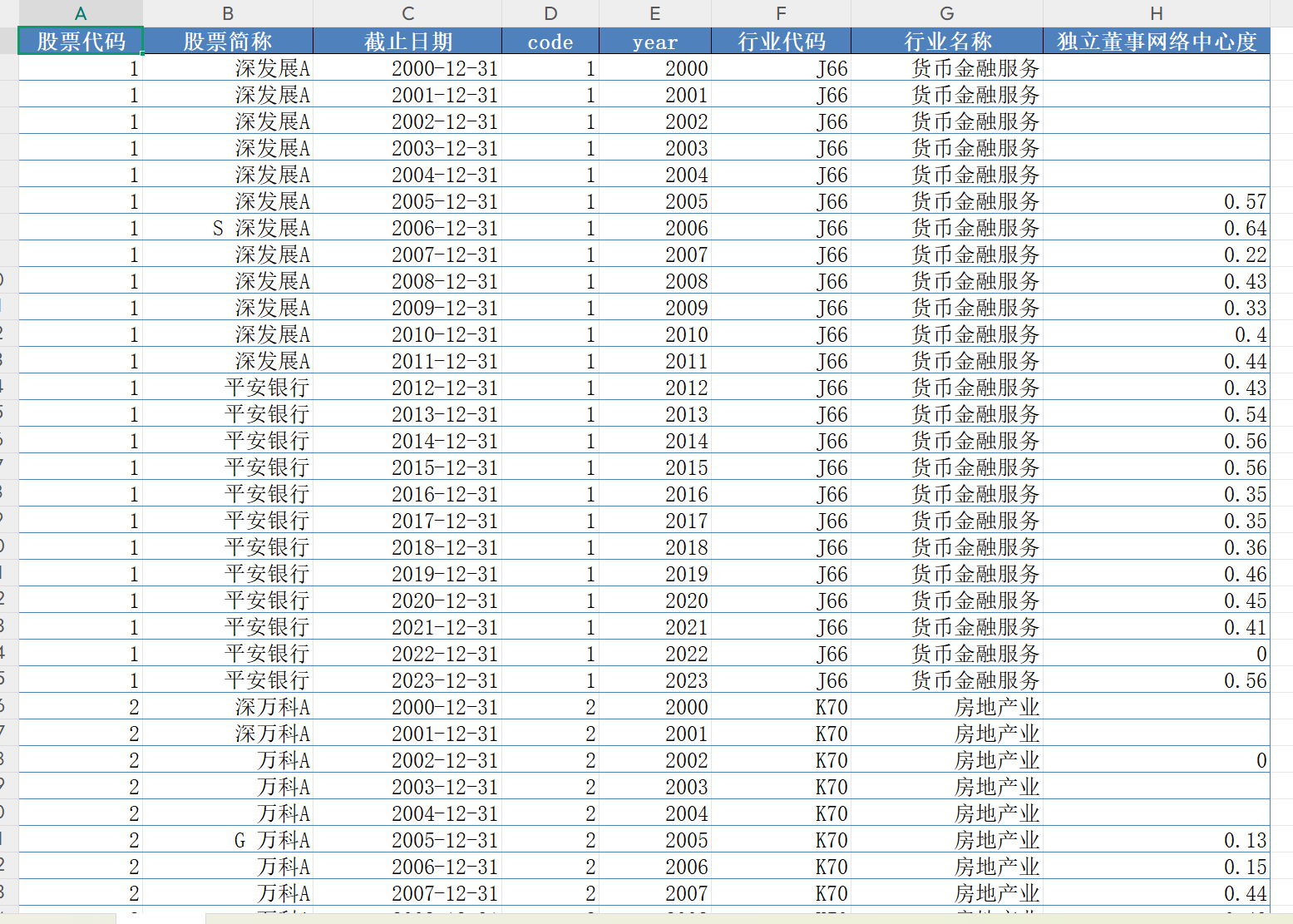 A股公司独立董事是现代公司治理结构中的重要组成部分,而独立董事网络中心度是衡量独立董事在董事会网络中的影响力和连接性的指标,可用于深入研究公司治理和市场表现之间的关系,是公司治理、社会网络、企业绩效及政策研究的重要基础