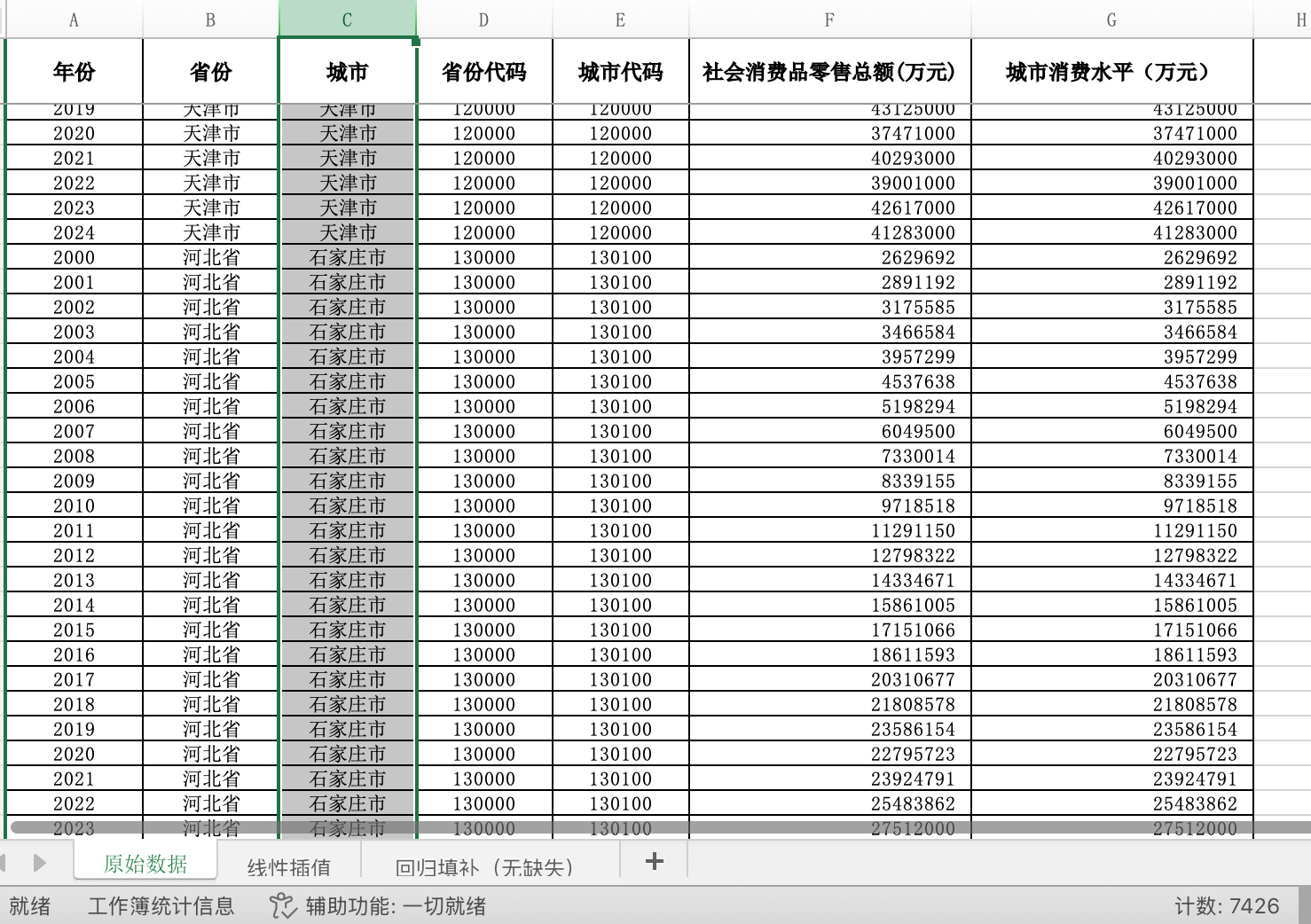 城市代码 | 社会消费品零售总额 |