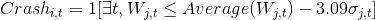 1[·]为指示函数,当股票j 在一季度中存在一日满足不等式时,变量取值为1,表示该股票发生了崩盘事件,否则为0。σj,t 该股票第t 季度日持有收益的标准差,3.09 个标准差对应于正态分布概率小于1%的区域。