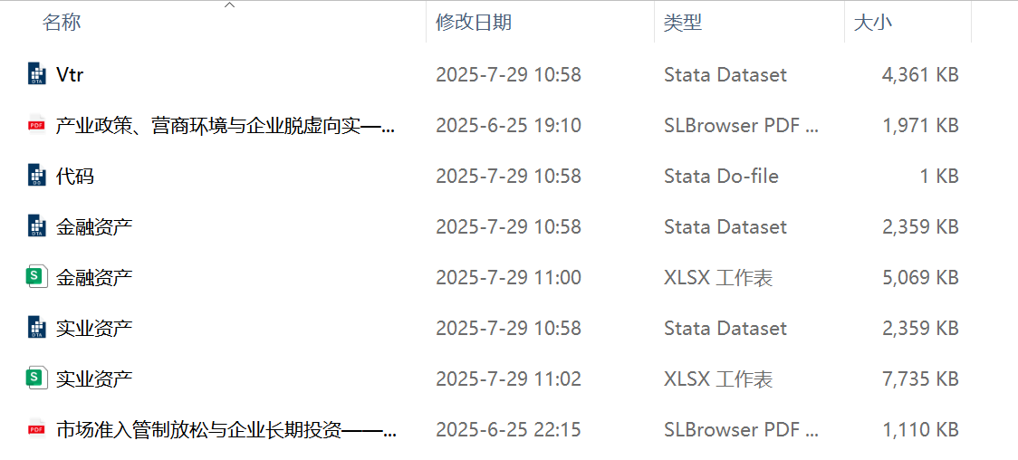 本数据参考《财经研究》中郭飞等(2022)的研究方法,采用实业资产投资率和金融资产投资率对5700+上市公司1990-2024年期间的脱虚向实程度进行衡量,包含原始数据、计算代码及最终结果