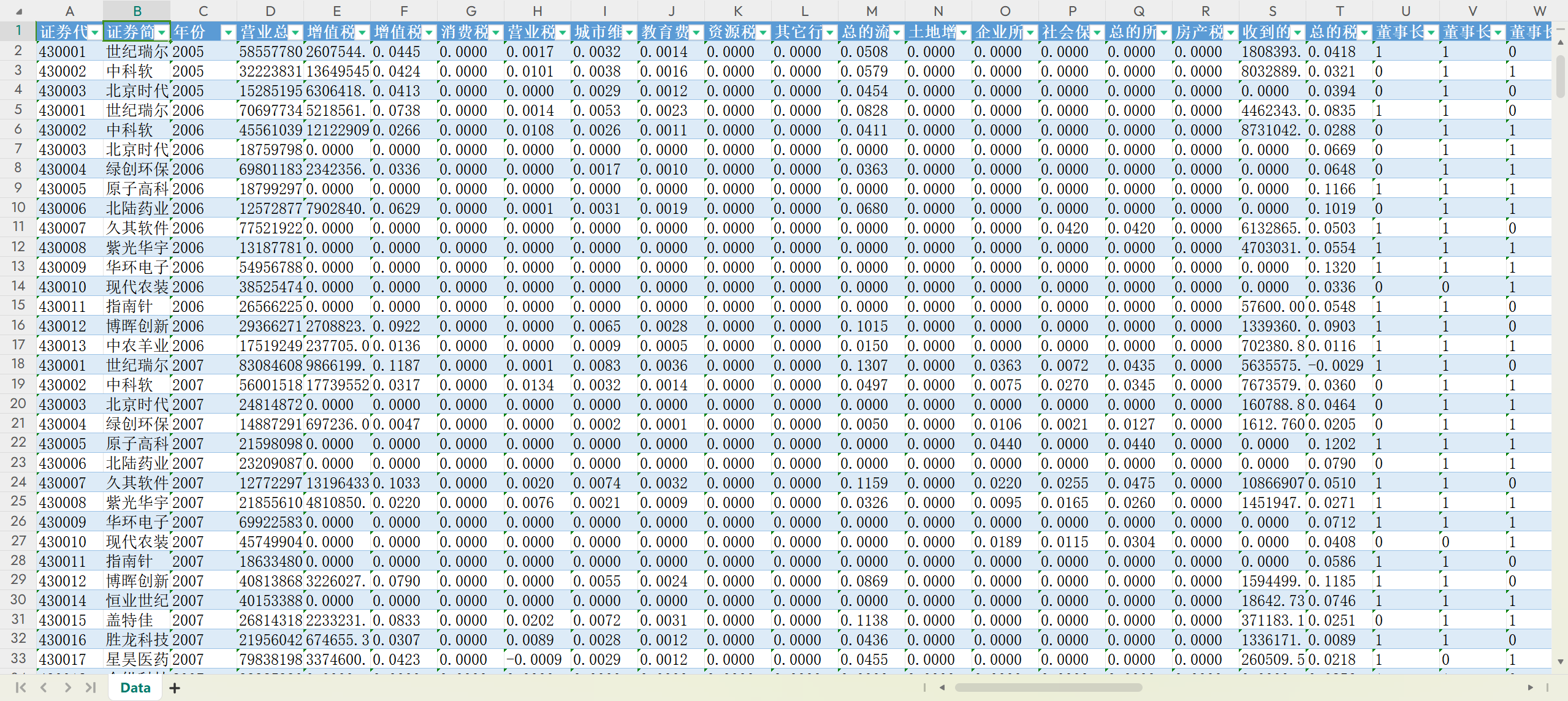 总的税费负担率合计 董事长年龄1 董事长性别1 董事长和总经理(总裁、CEO)的社会关系 独立董事比例(%)