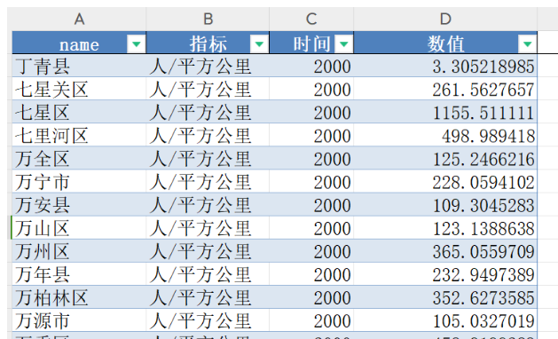 中国省市县-人口密度数据(2000-2023年)