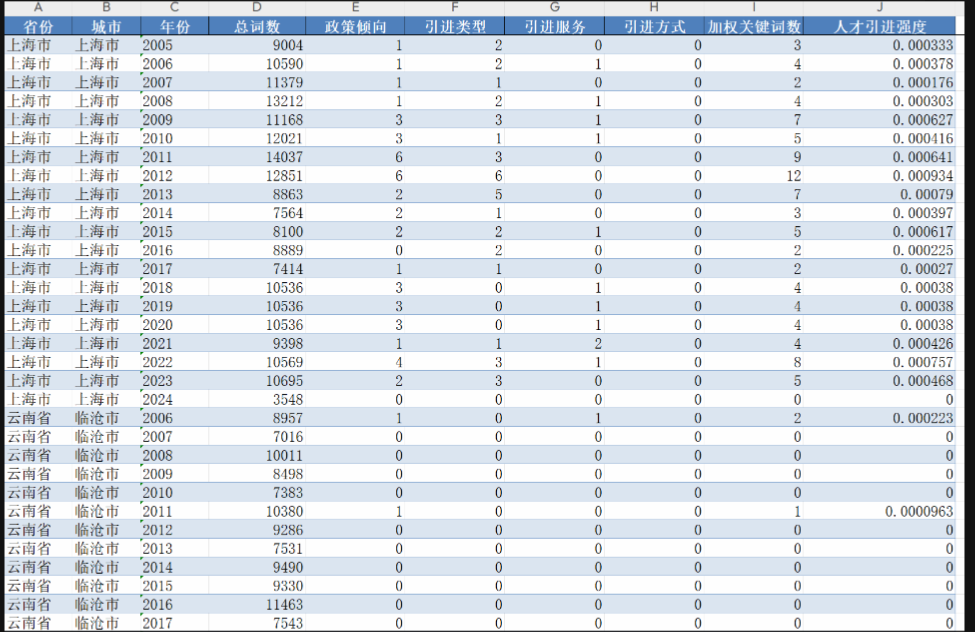 一、城市人才引进强度数据的介绍
