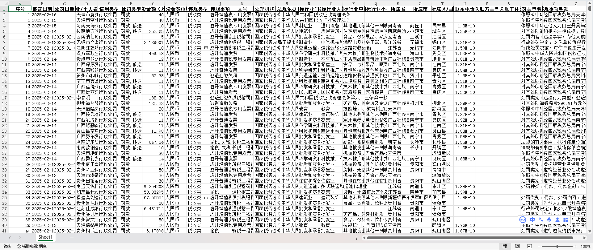 中国企业税务行政处罚数据(2000-2025.2)