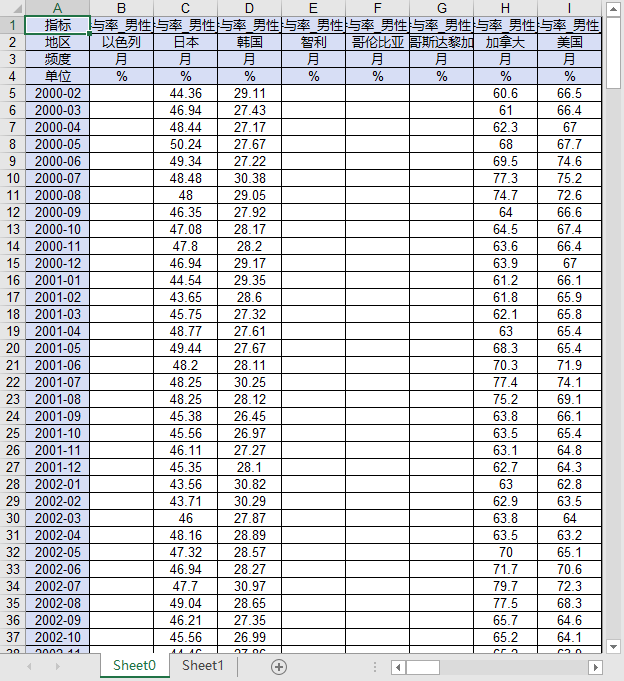 经合组织部分国家地区分年龄段劳动参与率2000-2025男性女性15岁及以上15-24岁15-64岁15-74岁25-54岁55-64岁