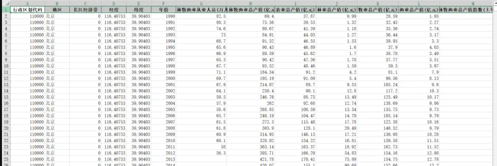 本次分享的数据为中国地区粮食播种、粮食产量、灾害等数据,包括369个指标,各类农作物播种面积、粮食产量、牲畜饲养、受灾面积等。这些指标综合反映了中国农业生产、粮食安全的相关情况