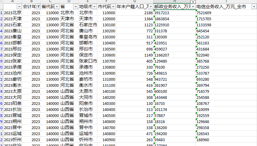 含299个城市,时间跨度为23年,使用的是2024年中国城市统计年鉴更新(2024年城市年鉴统计的是2023年数据)