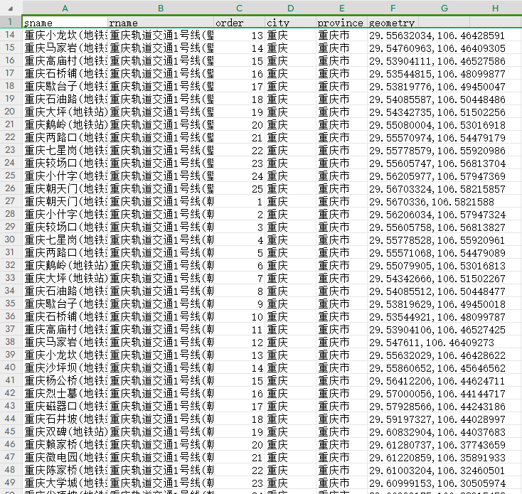 数据名称:中国地铁线路及站点数据