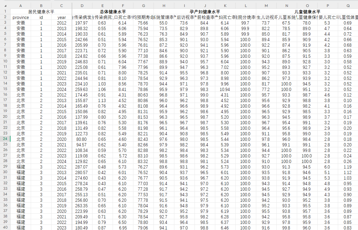 2012-2024全国各省居民健康水平与医疗资源指标面板数据