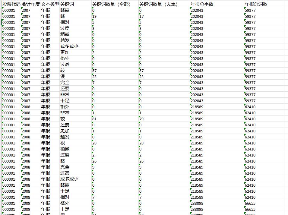 在对文本进行深度整理和清洗的基础上计算这些关键词出现频次时,区分为全部文本的关键词数量和去掉表格之后的文本关键词数量,以期为学术研究提供多元化的数据支持。