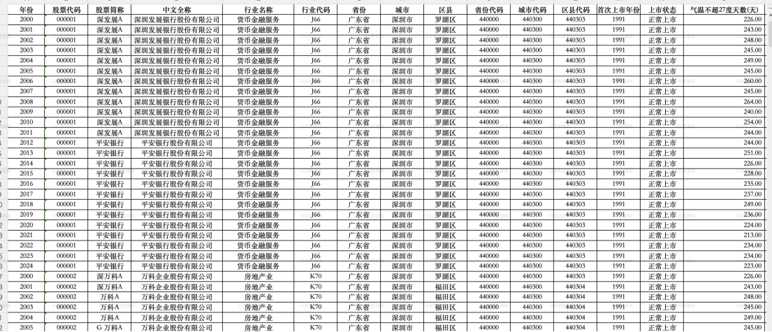 首次上市年份 上市状态 气温不超27度天数