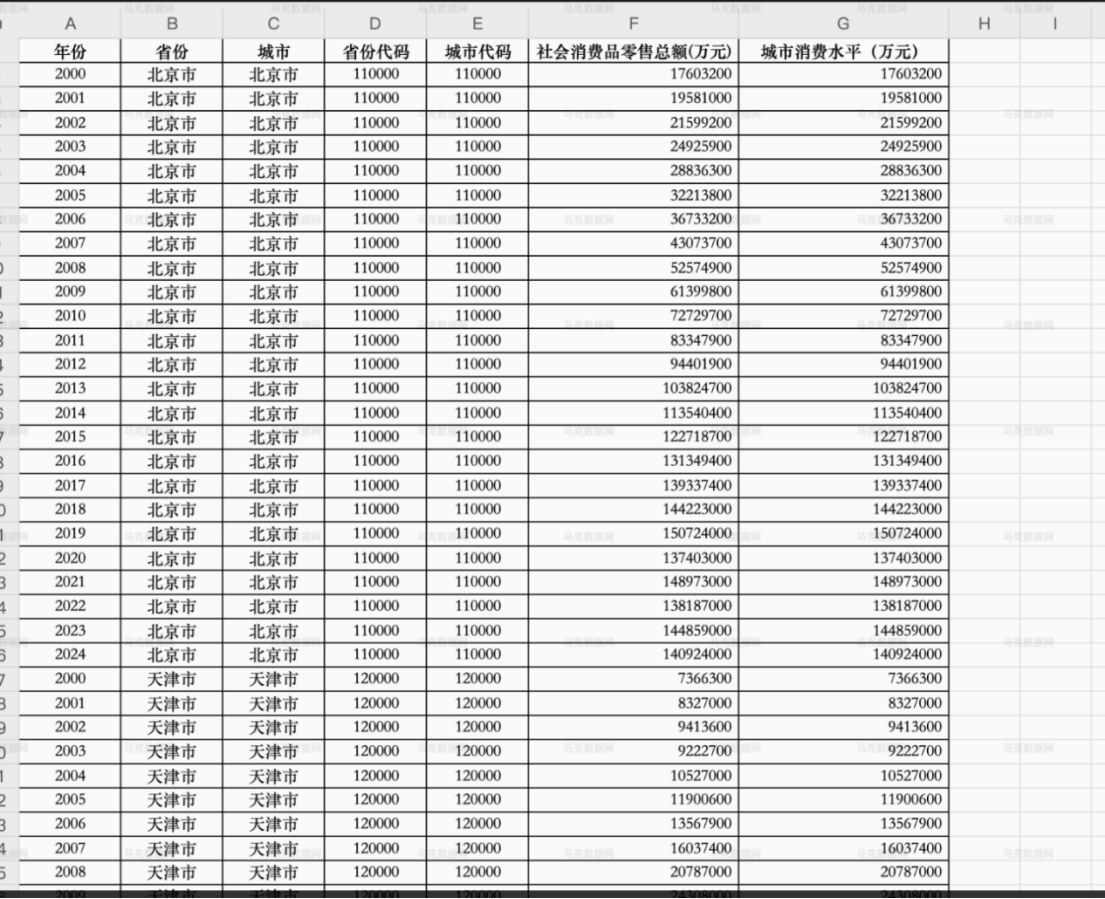 数据名称:2000-2024年地级市消费水平