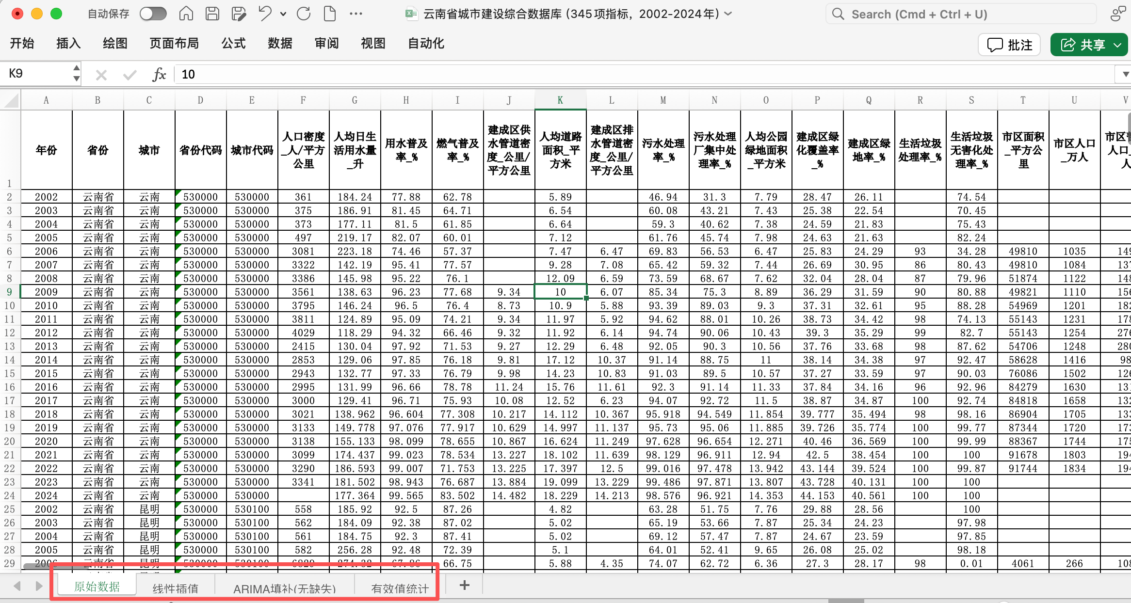 云南省城市建设数据库(省级+地级市+县级市面板数据,345项城市建设指标,2002-2024年)