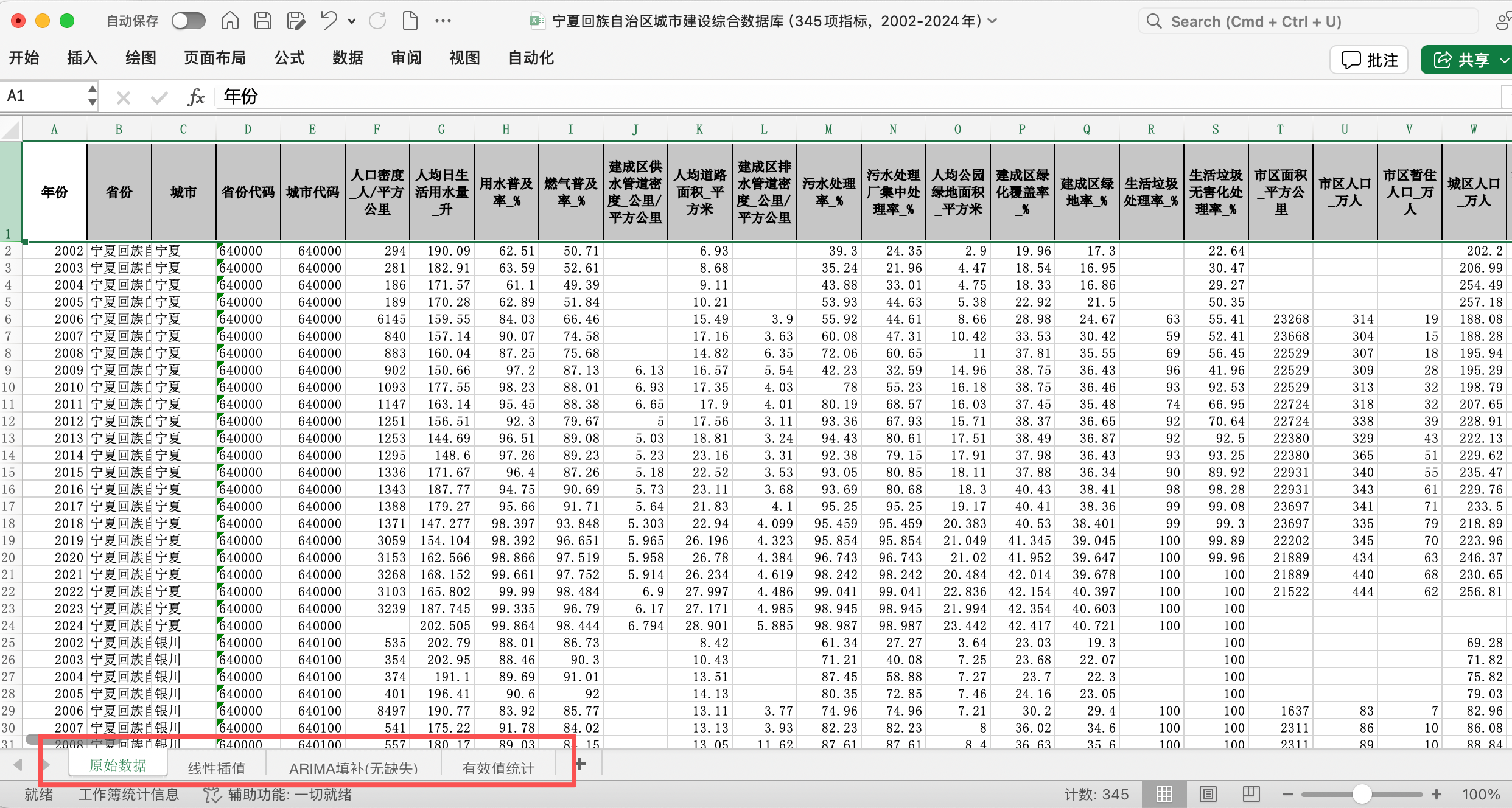 宁夏回族自治区城市建设数据库(省级+地级市+县级市面板数据,345项城市建设指标,2002-2024年)