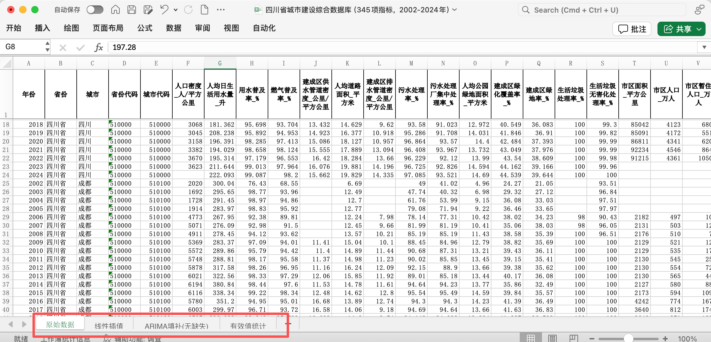 四川省城市建设数据库(省级+地级市+县级市面板数据,345项城市建设指标,2002-2024年)