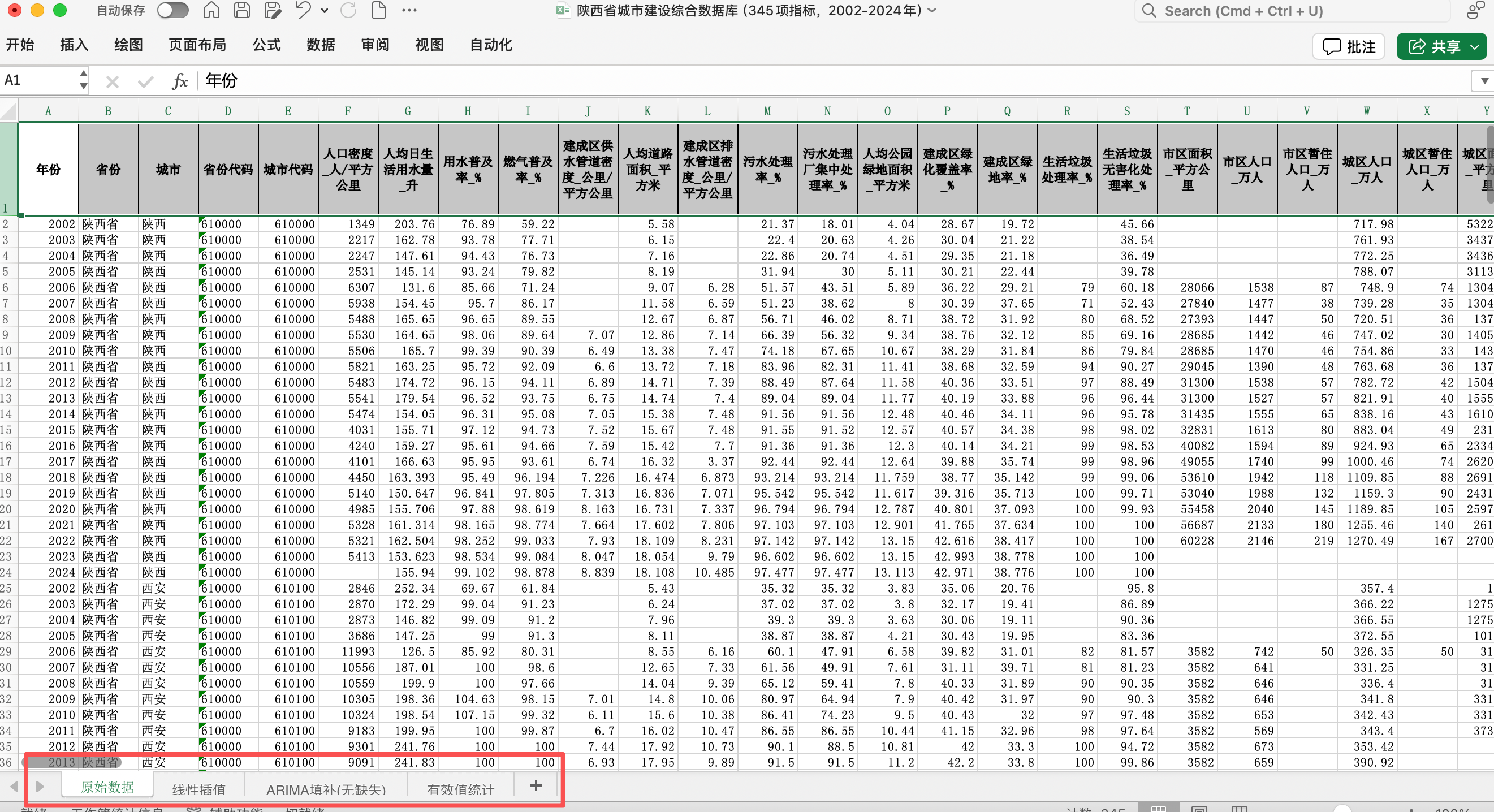 陕西省城市建设数据库(省级+地级市+县级市面板数据,345项城市建设指标,2002-2024年)