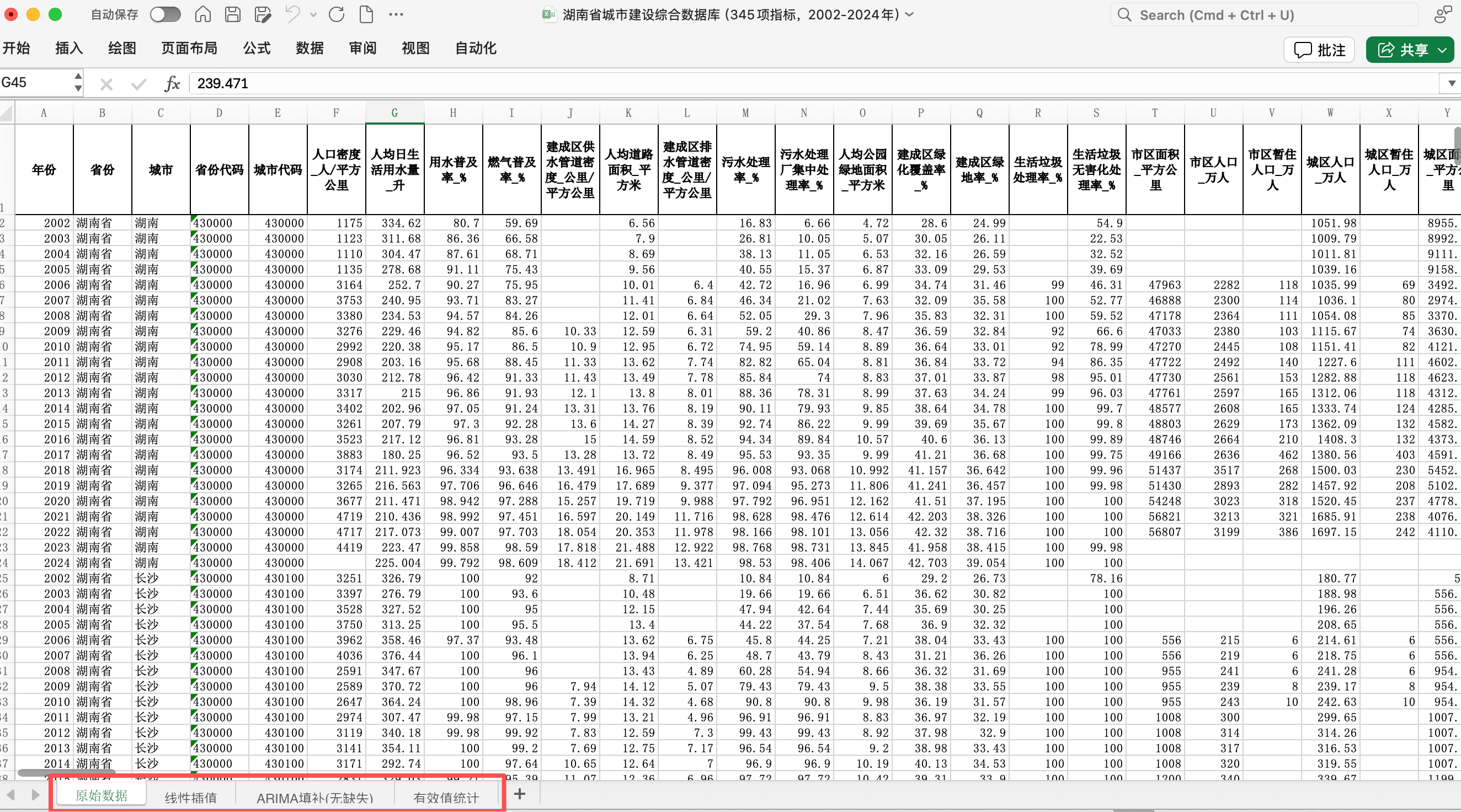 湖南省城市建设数据库(省级+地级市+县级市面板数据,345项城市建设指标,2002-2024年)