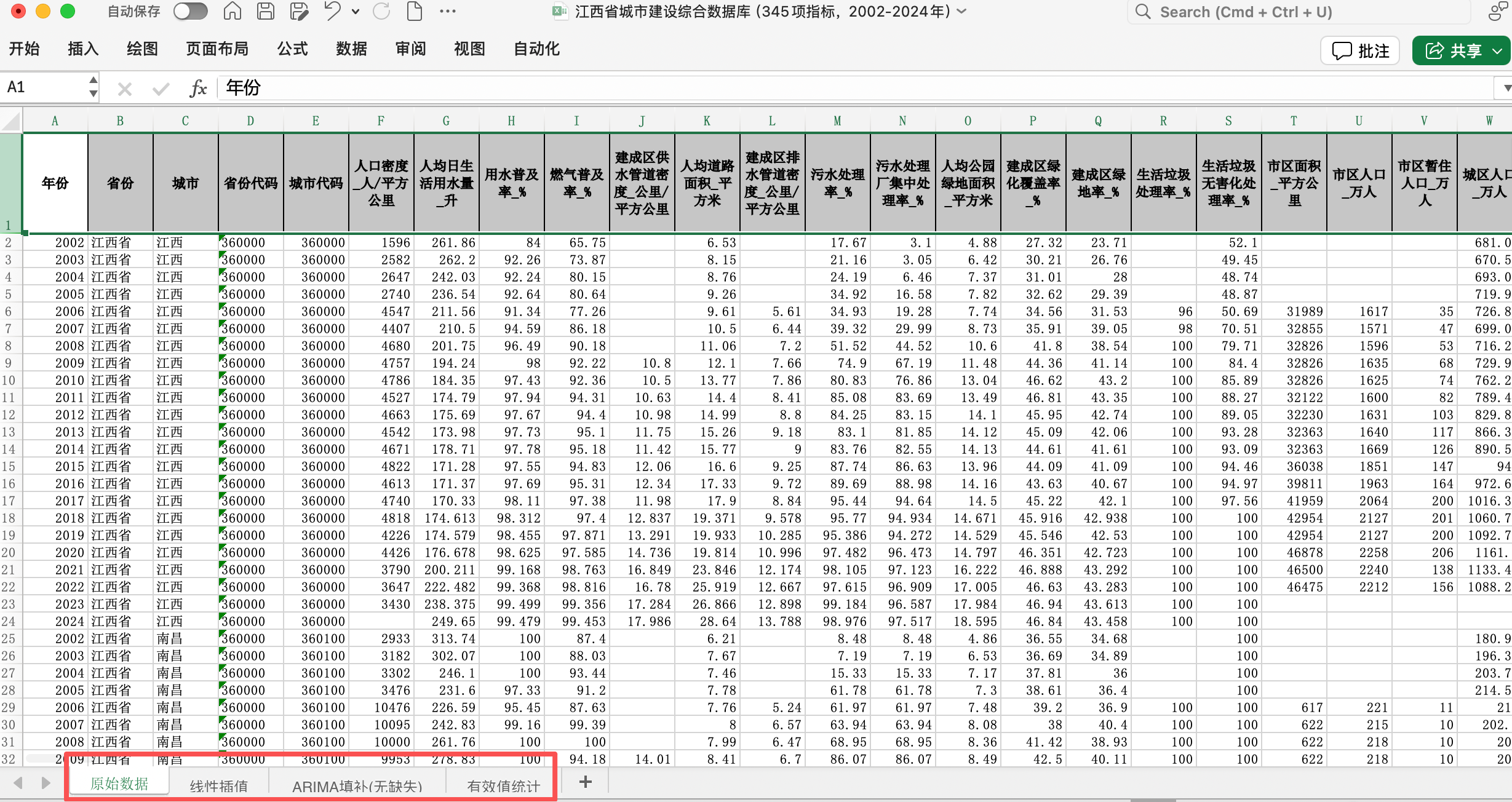 江西省城市建设数据库(省级+地级市+县级市面板数据,345项城市建设指标,2002-2024年)