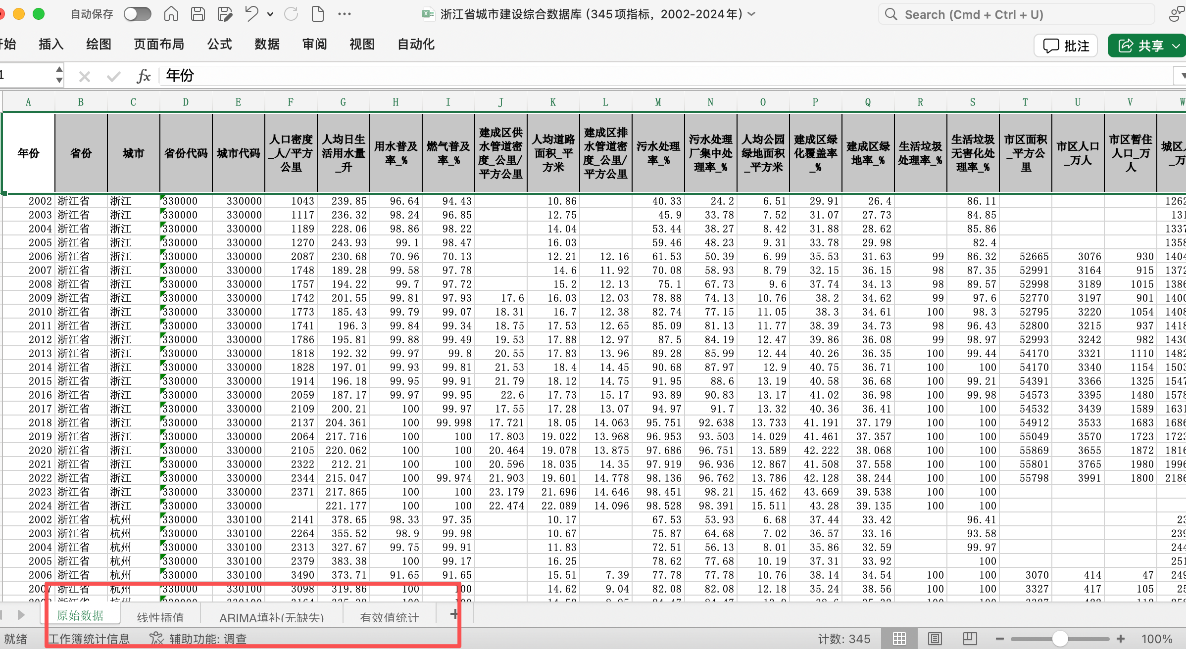 浙江省城市建设数据库(省级+地级市+县级市面板数据,345项城市建设指标,2002-2024年)