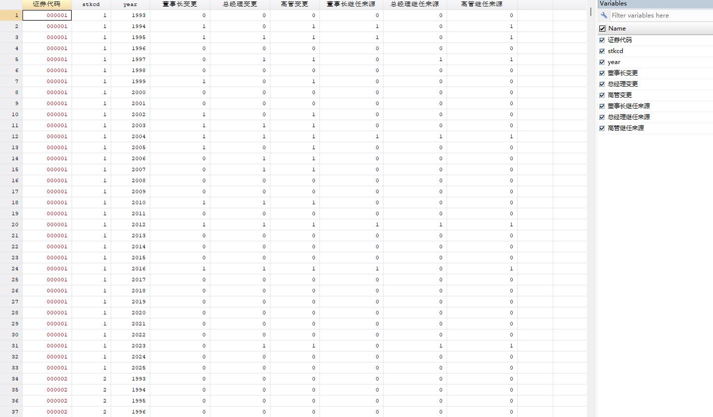 高管变更:若该年董事长或总经理变更取1,否则0