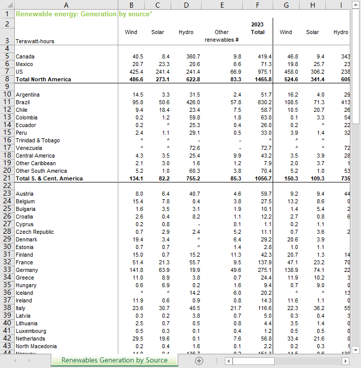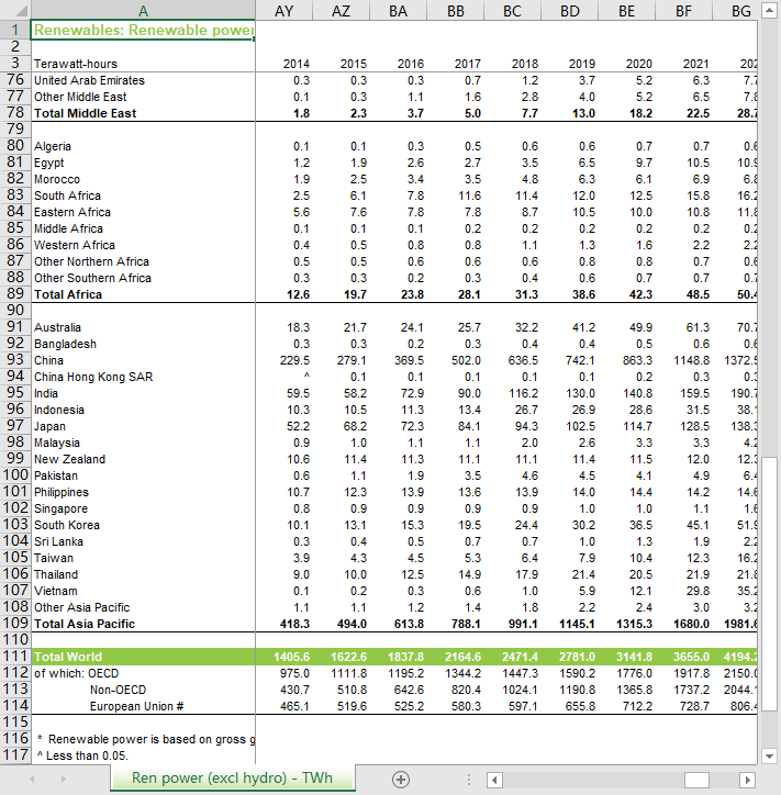 可再生能源 - 可再生电力(不含水电) - TWh(自1965-2024)