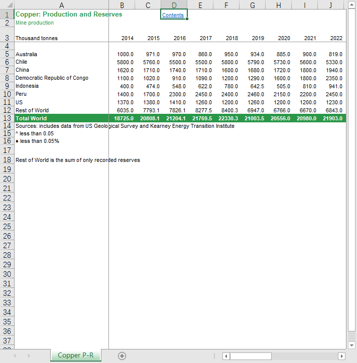 关键材料 - 铜生产 - 储量(自2014-2024)