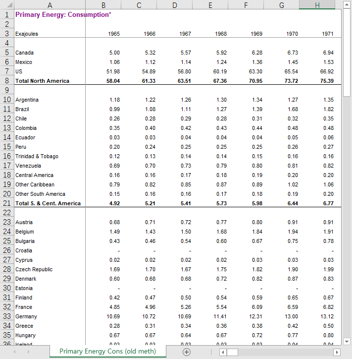 全球世界各国地区一次能源消费量1965-2024石油天然气煤炭核能水力发电可再生能源石油天然气煤核能水力发电