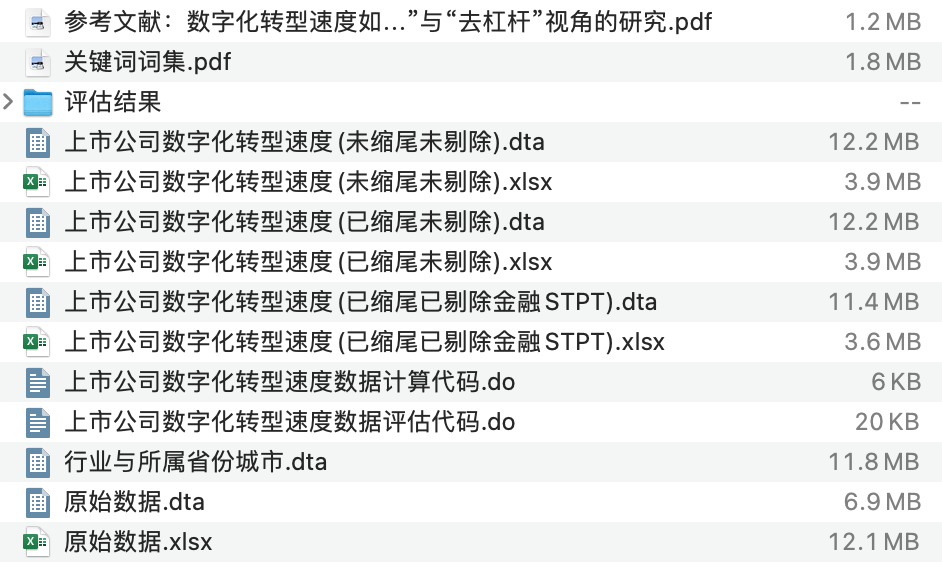 文件格式:Dta格式(使用Stata打开)、Xlsx格式(使用Excel打开)