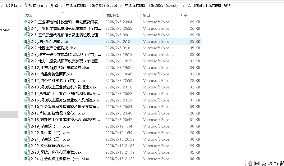 中国城市统计年鉴2025(excel格式),内为地级市2024年数据,一共30个excel子表,包含经济、社会、环境、医疗等方面的数据,