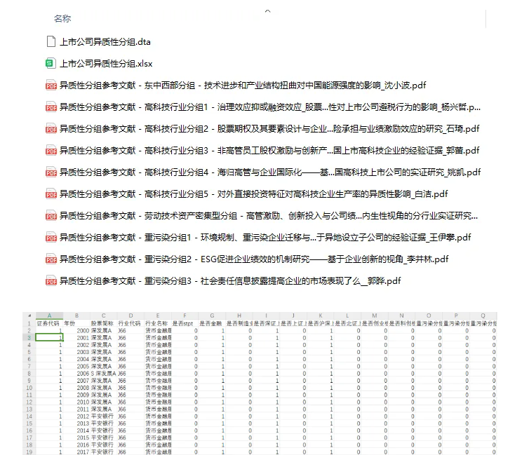 2000-2023年上市公司异质性分组、实证论文异质性检验、上市公司行业分组检验