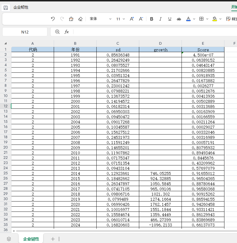 包含指标:代码 年份 sd growth Score