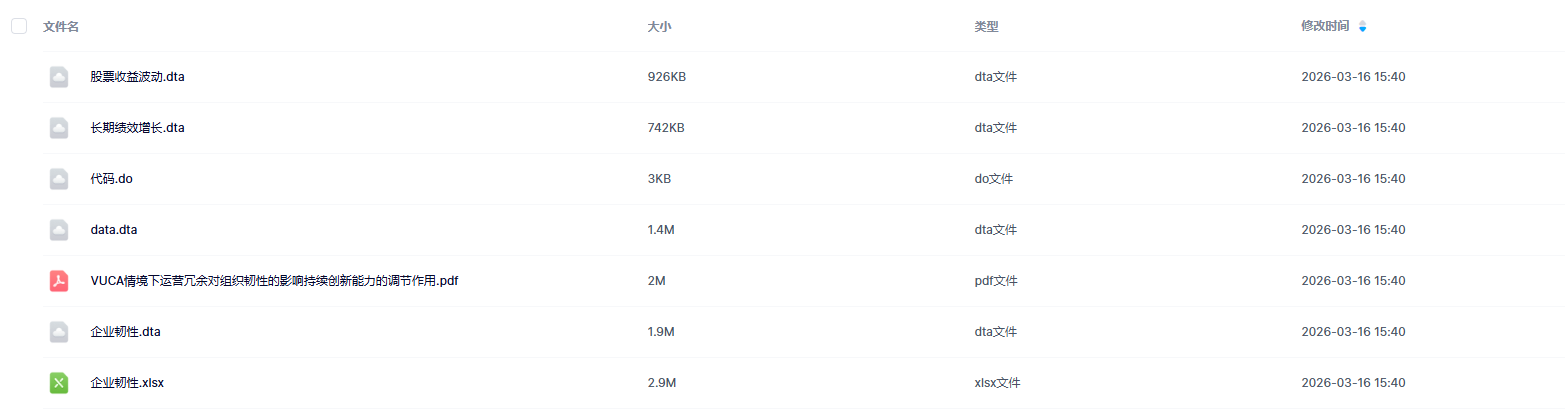 数据简介:企业组织韧性(Organizational Resilience)指的是企业在面对危机、挫折或变化时,能够迅速调整、适应并从中恢复的能力。这种韧性不仅体现在企业能够在短期内从危机中恢复,更重要的是企业能够利用这些危机或变化,实现自我更新和成长,获得长期竞争优势。参考Ortiz提出的方法来,将组织韧性概念化并视其为一个具有高绩效增长和低财务波动性的二维结构。组织韧性:使用当年月个股回报收益率标准差、企业3年内累计销售收入增长额(百亿元)两个指标运用熵值法计算出的综合得分即为组织韧性。