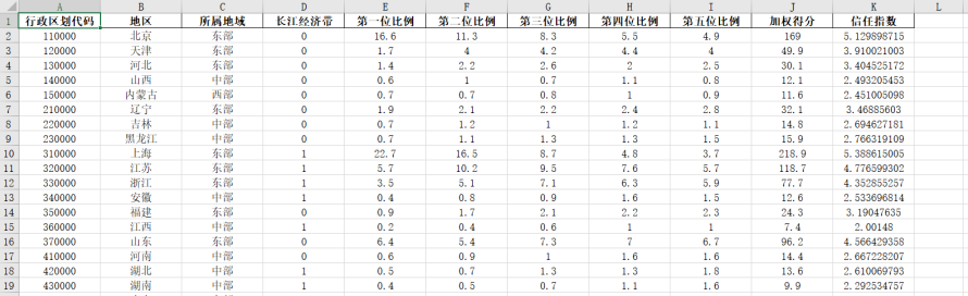 数据说明:包括地区信任指数、企业信任指数