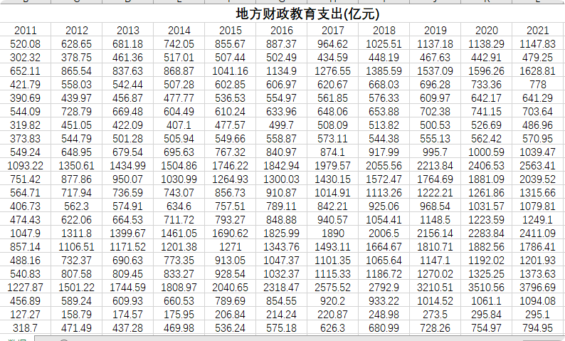4、数据指标:地方财政教育支出(亿元)。