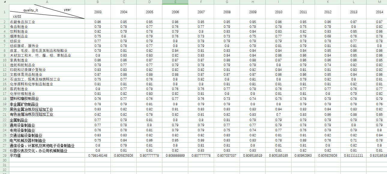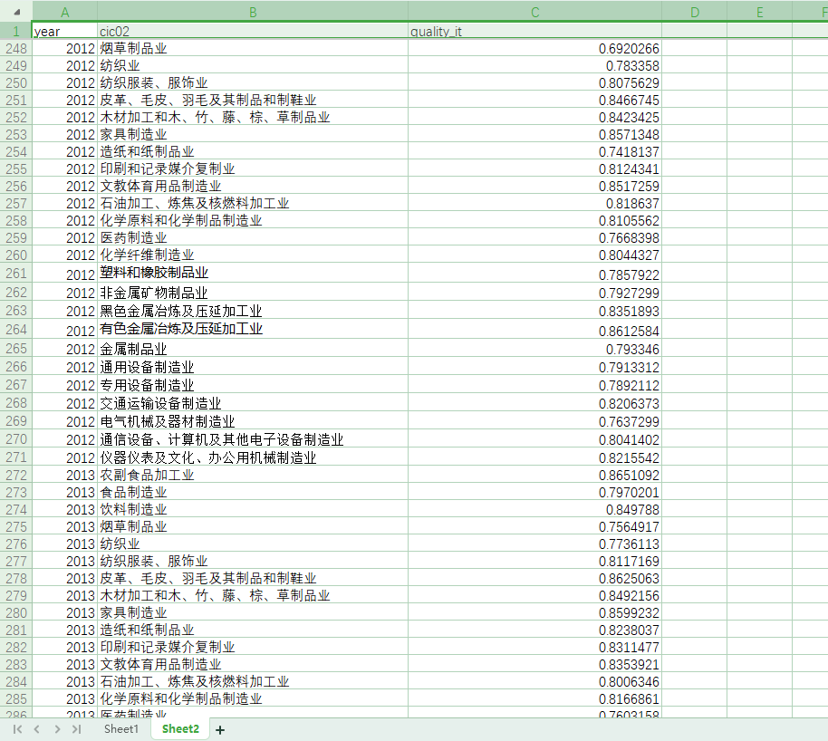 数据来源:测算制造业出口产品质量所用到的数据来自于CEPⅡ BASE提供的HS6位码国际贸易数据。
