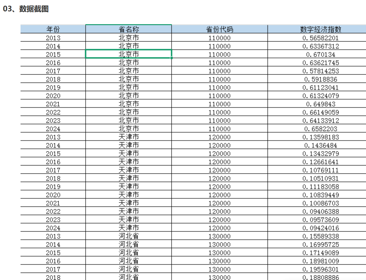各省级数字经济指数数据(2013-2024年)01、数据介绍