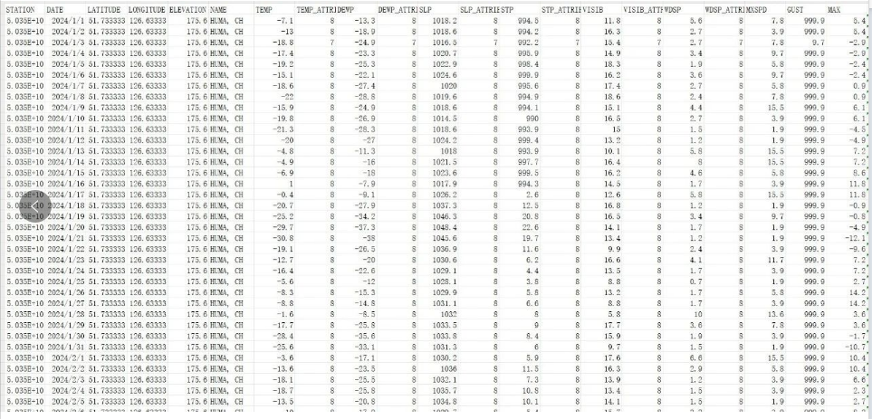 这份数据集由美国国家海洋和大气管理局(NOAA)的国家环境信息中心(NCEI)发布,是理解中国气象变化的一把钥匙。数据集的时间跨度从1942年开始,一直延伸到2024年,为我们提供了一个长期的、连续的气象记录。
