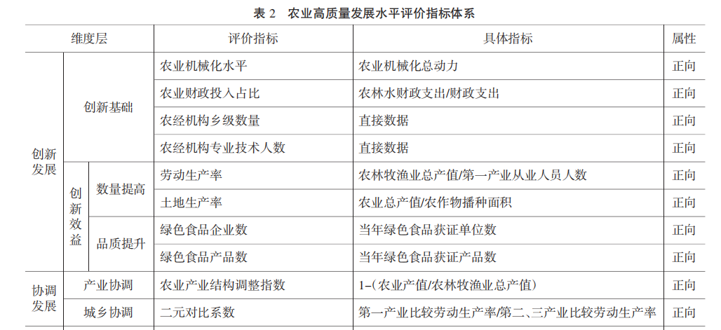 参考杨军鸽和王琴梅(2023)构建的指标体系并鉴于数据的可得性,选择以下指标对农业高质量发展指数进行测算。