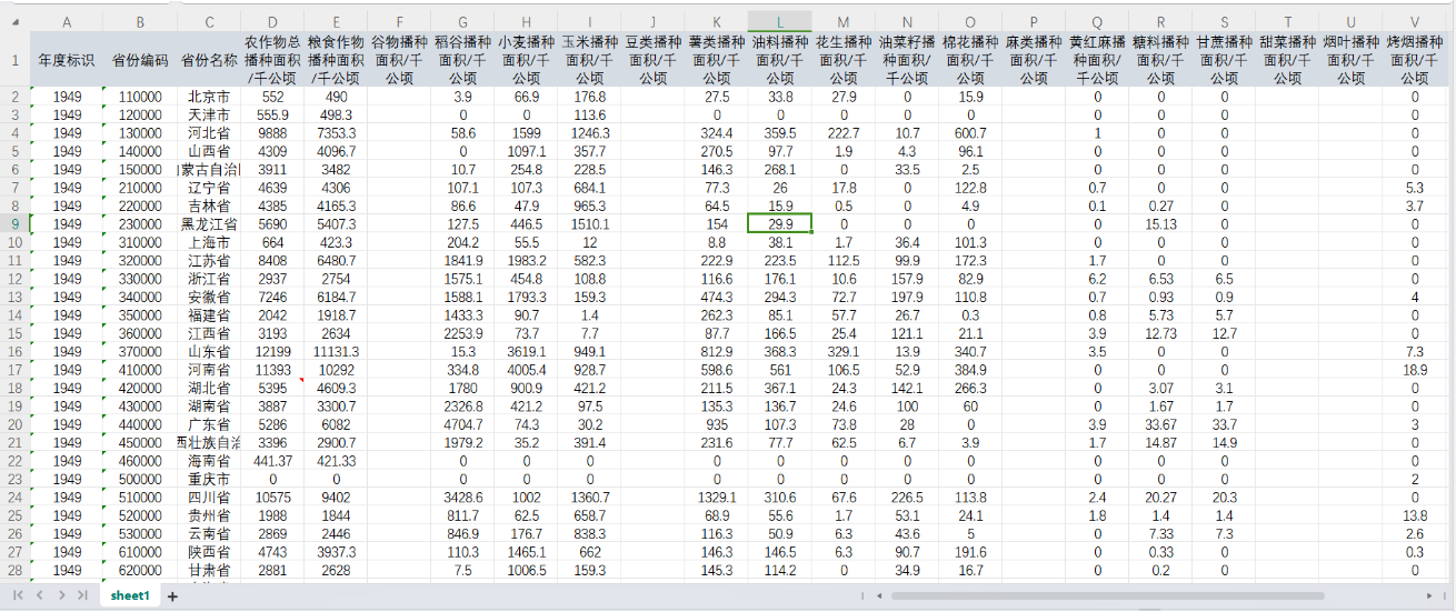 1949-2022年各省农作物播种面积数据