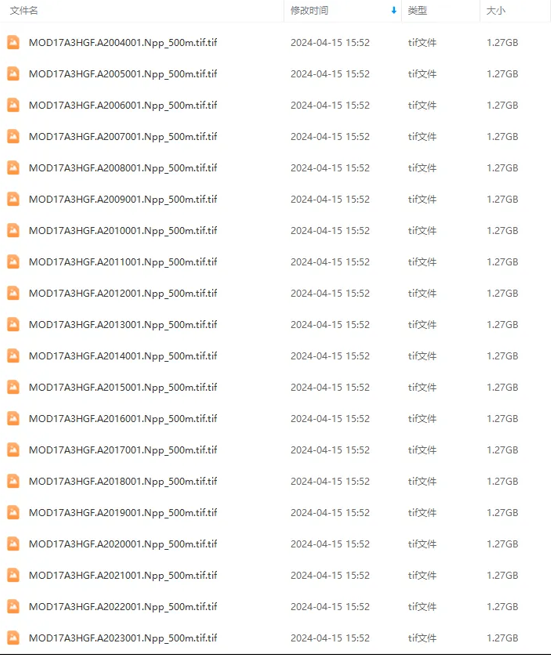 2001-2023年中国MOD17A3H植被净初级生产力(NPP)数据