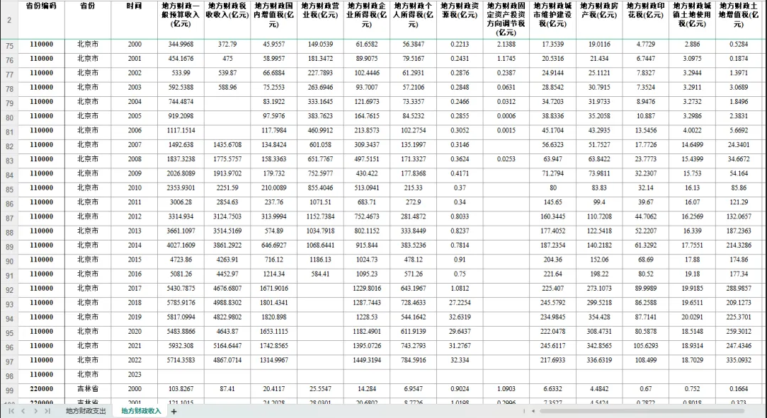 数据名称:1998-2022年全国各省地方财政收入与地方财政支出面板数据