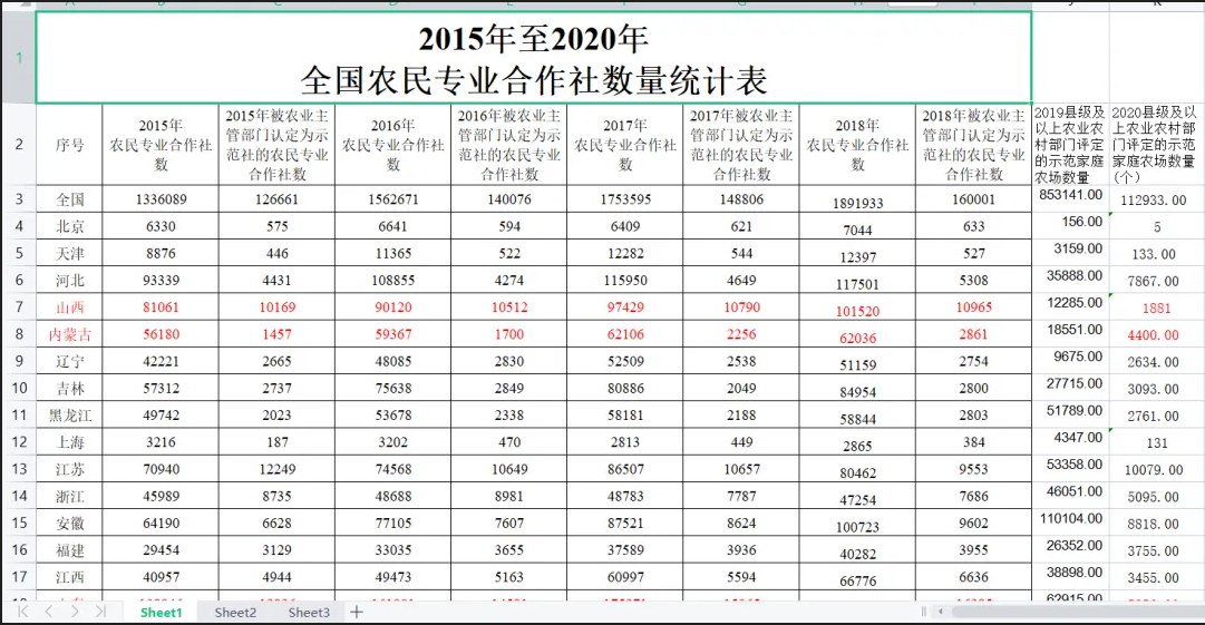 《中国农村经营管理统计年报》根据农村经营管理情况统计报表调查数据和分析报告编写而成。系统收录了全国各省份当年农村经营管理各项数据,包括农村经济基本情况、农村土地承包经营及管理情况、农村集体经济组织经营和财务状况、农民专业合作组织发展、农村集体资产财务管理,农村经营管理机构队伍、农村经营管理信息化等,还收录了当年农村经营管理情况统计系列分析报告。18年以后 中国农村经营管理统计年报改名 分成了《中国农村合作经济统计年报》 和 《中国农村政策与改革统计年报》!需要把两个年报结合使用~统计内容极其丰富,几乎涵盖了合作经济的所有指标,而且细分到省!