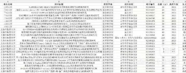 统计项目包括:项目名称、负责人、依托单位、项目类型,资助金额,批准年份等等